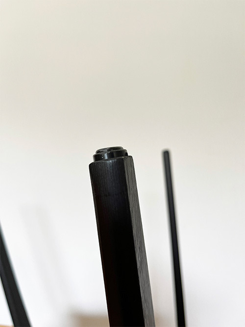 そしてこの素材配合のナゾな脚部の先端パーツ。硬い樹脂だと思うのだけど、フローリングに傷がつきそうでつかな