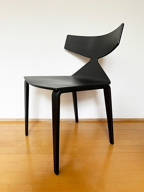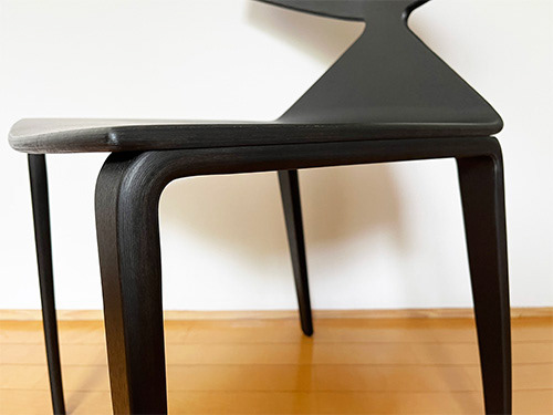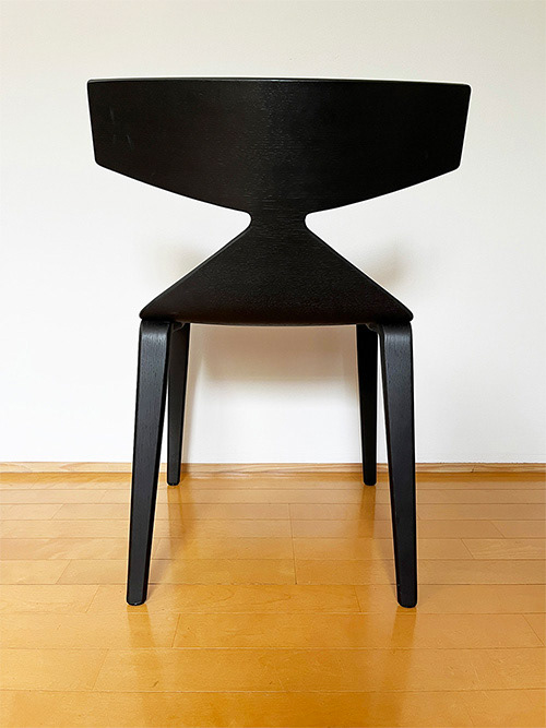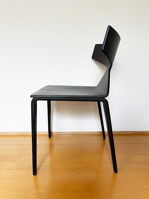 オーク材の曲げベニヤで、カラーは限りなく黒に近い灰茶色。中古ですがとても綺麗な状態で出会うことができました。デザイナーはLievore Altherr Molina(リエボレ・アルテール・モリーナ)。